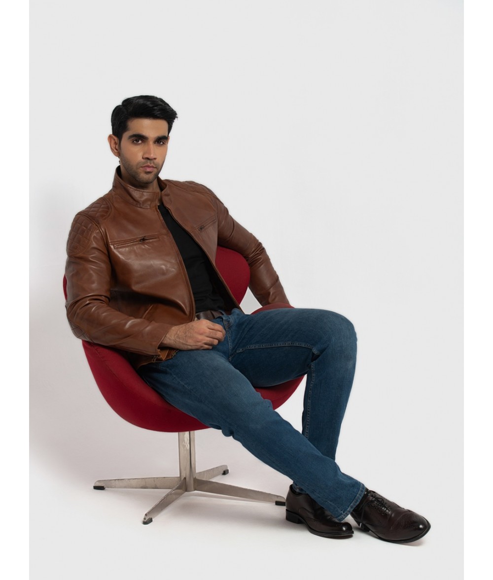 Racer Brown Quilted Leather Jacket Fort Men Distressed Jackets