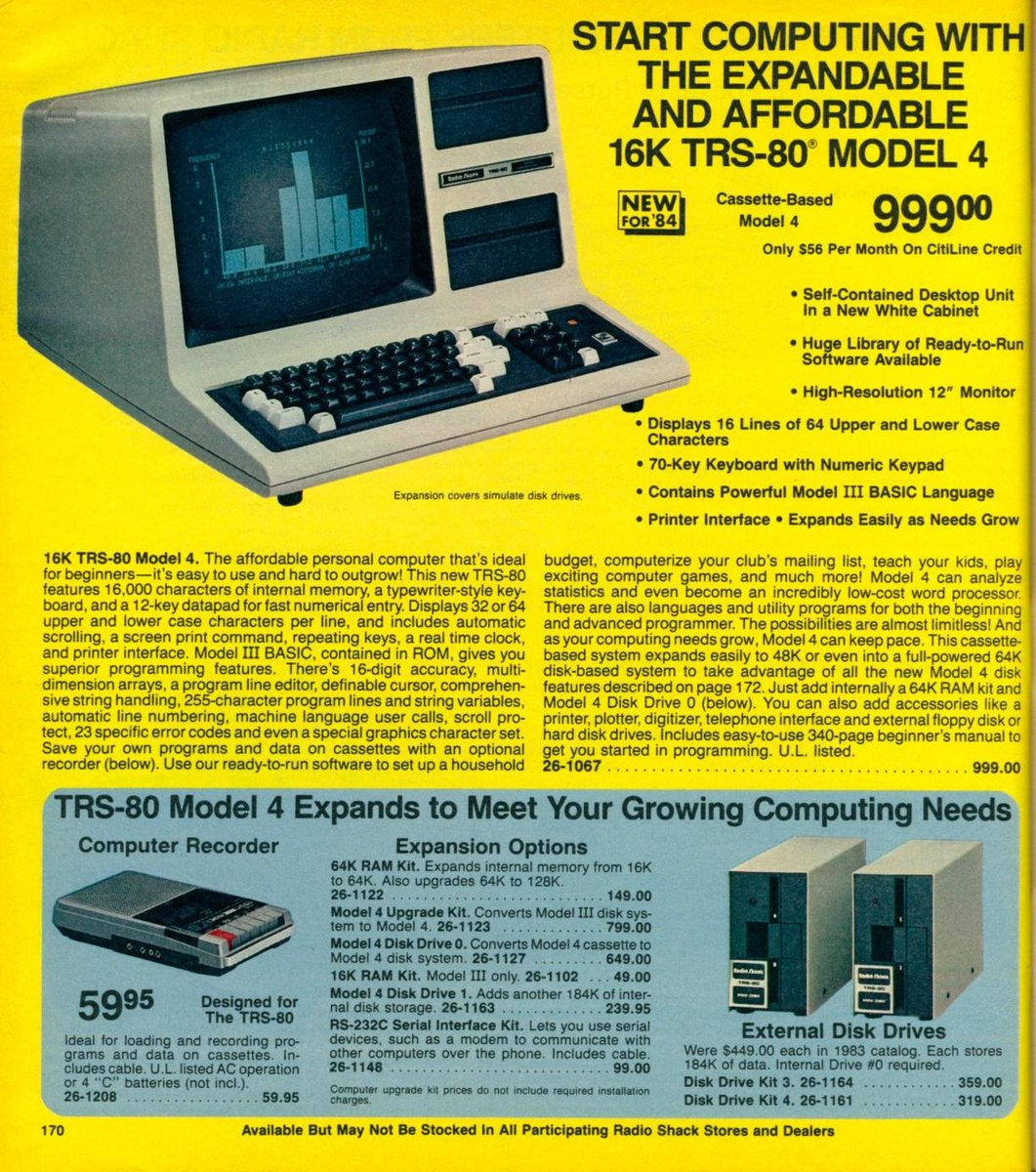 R. D. on Twitter "1984 catalog RADIO SHACK TRS80 Model 4 This 999
