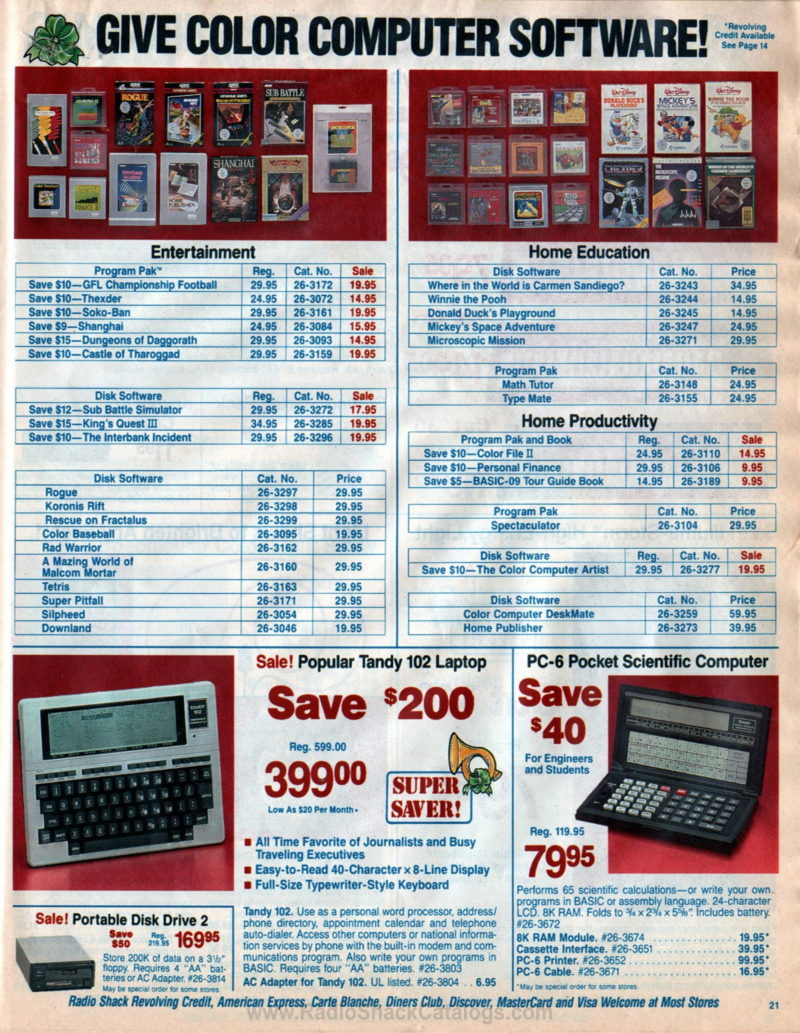 RSC20 Computer Catalog (1989)(Radio Shack) TRS80 Color, 51 OFF