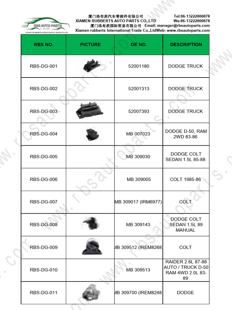Catalog of RBS DODGE List PDF Vehicle Technology Front Wheel