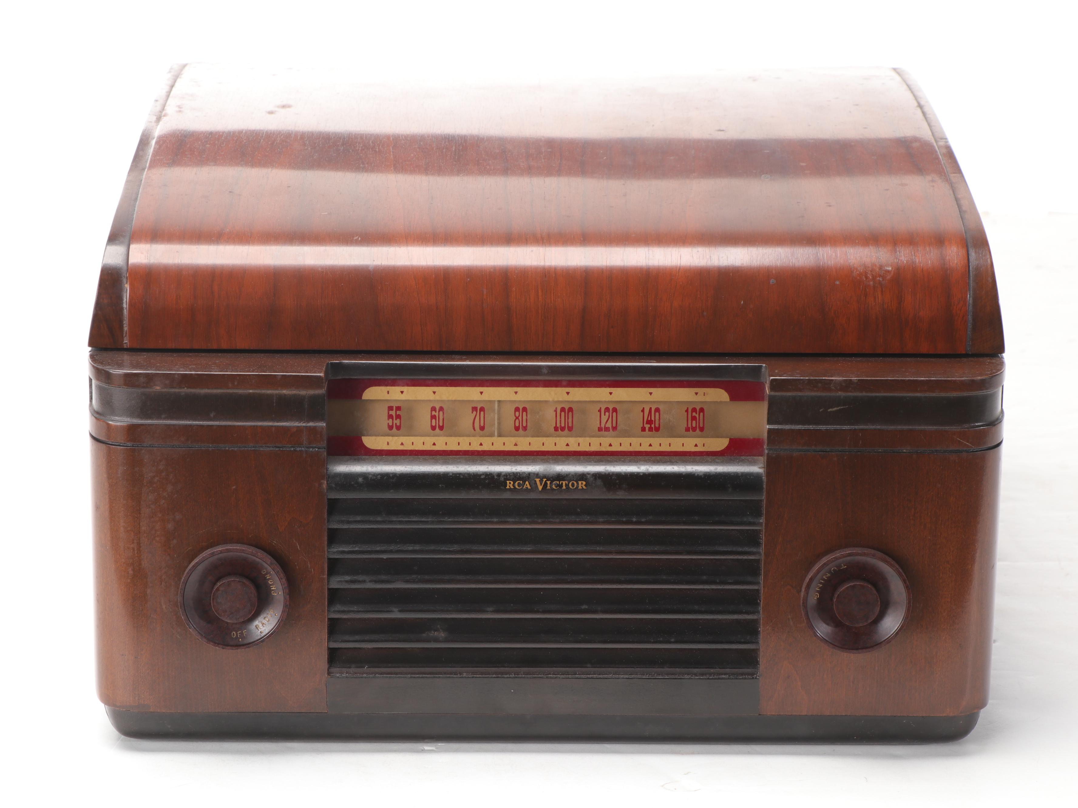 Lot Vintage RCA Victor Fruitwood Cased Radio