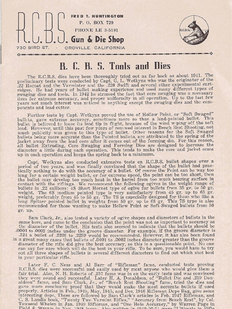 1956 Rcbs Catalog PDF Projectiles Hunting