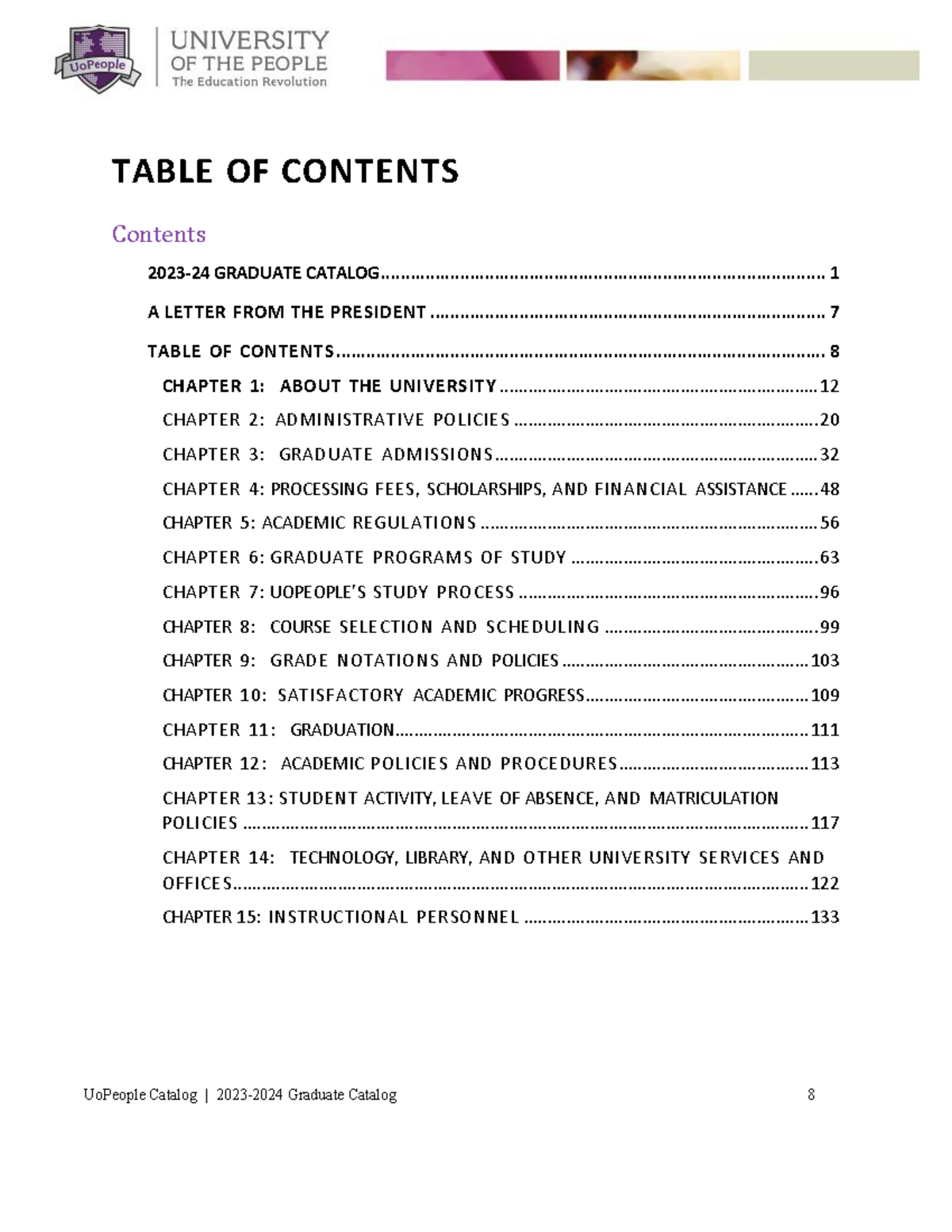 GradCatalogAY202324NewPathways (1) 8 TABLE OF CONTENTS UoPeople