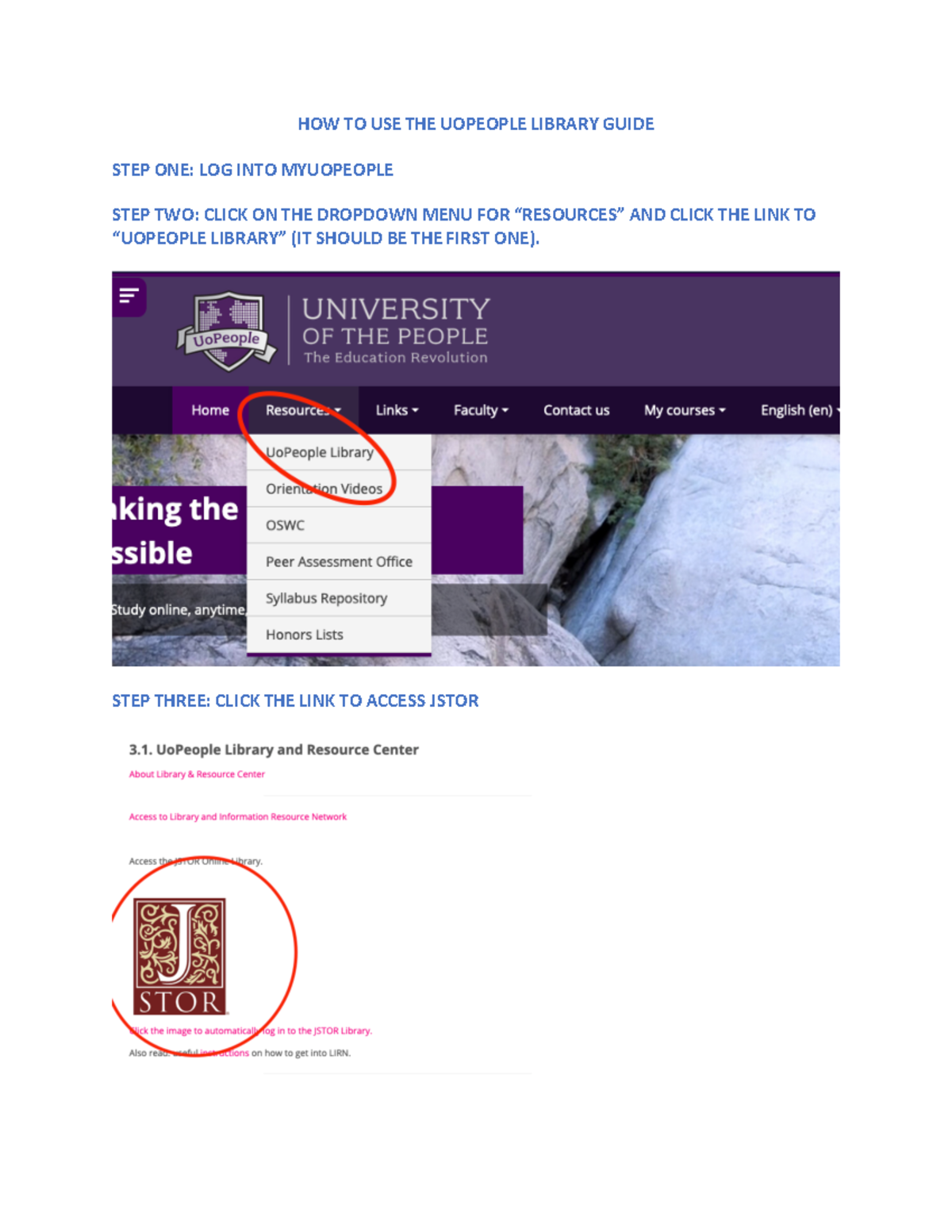 HOW TO USE THE Uopeople Library Jstor Guide Updated 17 June 2020 HOW