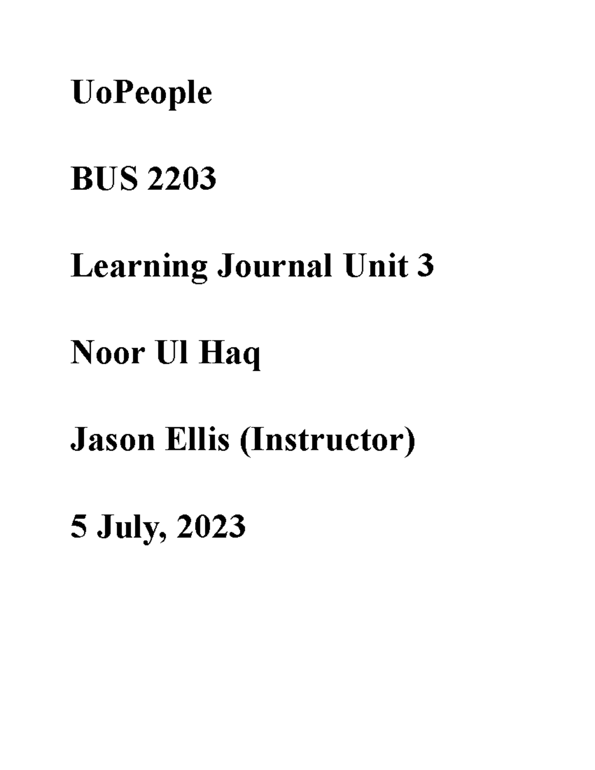 Learning Journal Unit 3 UoPeople BUS 2203 Learning Journal Unit 3