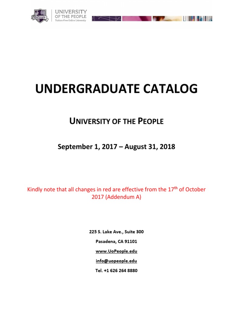 UoPeople Undergraduate Catalog AY2018 ADDENDUM A PDF Curriculum
