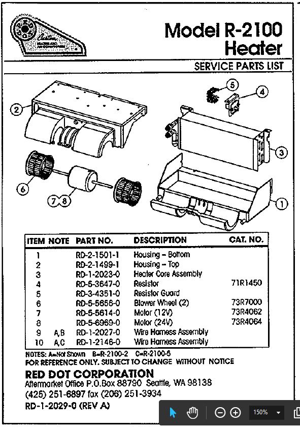 R42407 from RED DOT HEATER A/C SLEEPER 12V REV. S