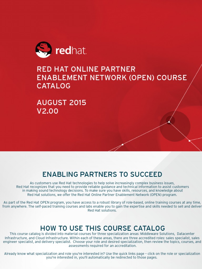 Red Hat Online Partner Enablement Network (Open) Course Catalog AUGUST
