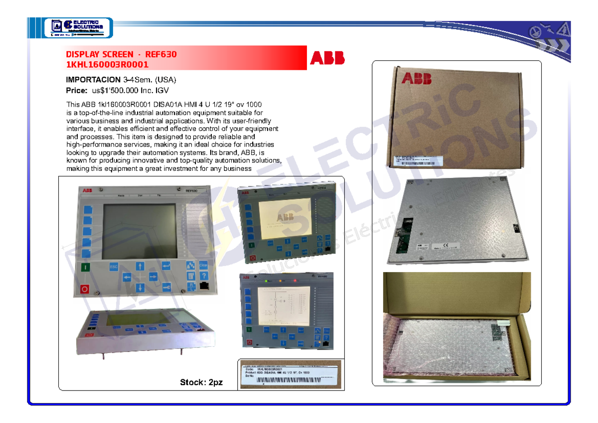 Sin título1 DISPLAY SCREEN REF630 1KHL160003R0001 solo cabezal