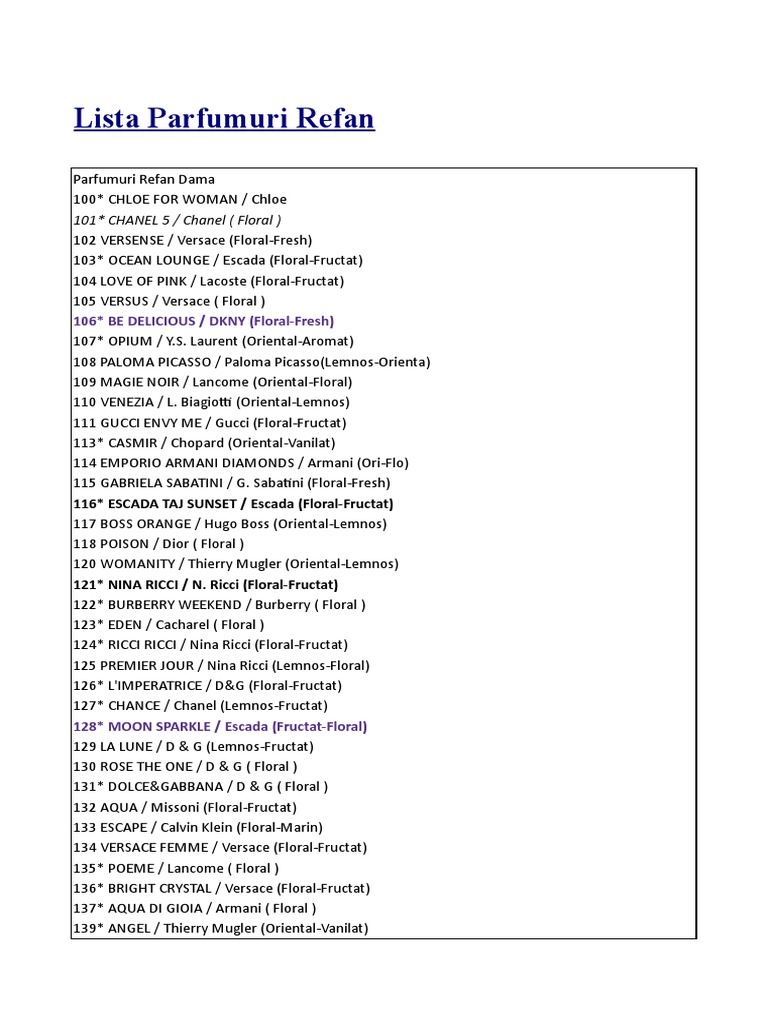 Acasa Parfumuri REFAN ROMANIA Alege Parfumul Dorit
