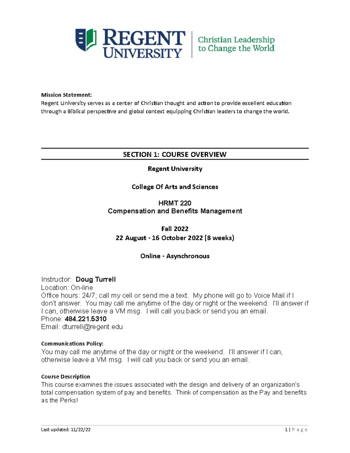 Course Syllabus Regent University