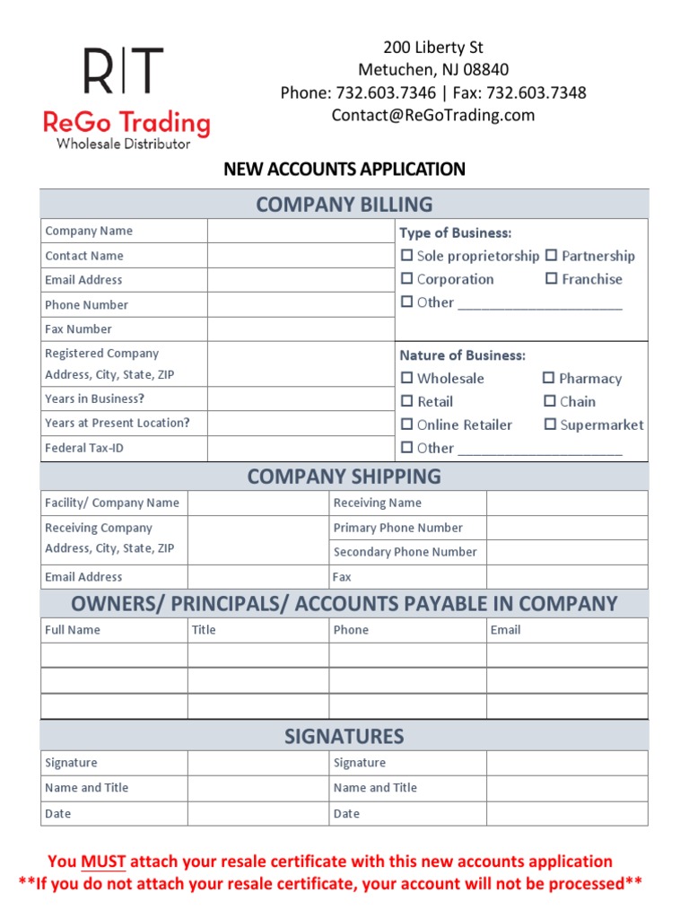 ReGo Trading New Customer Application PDF