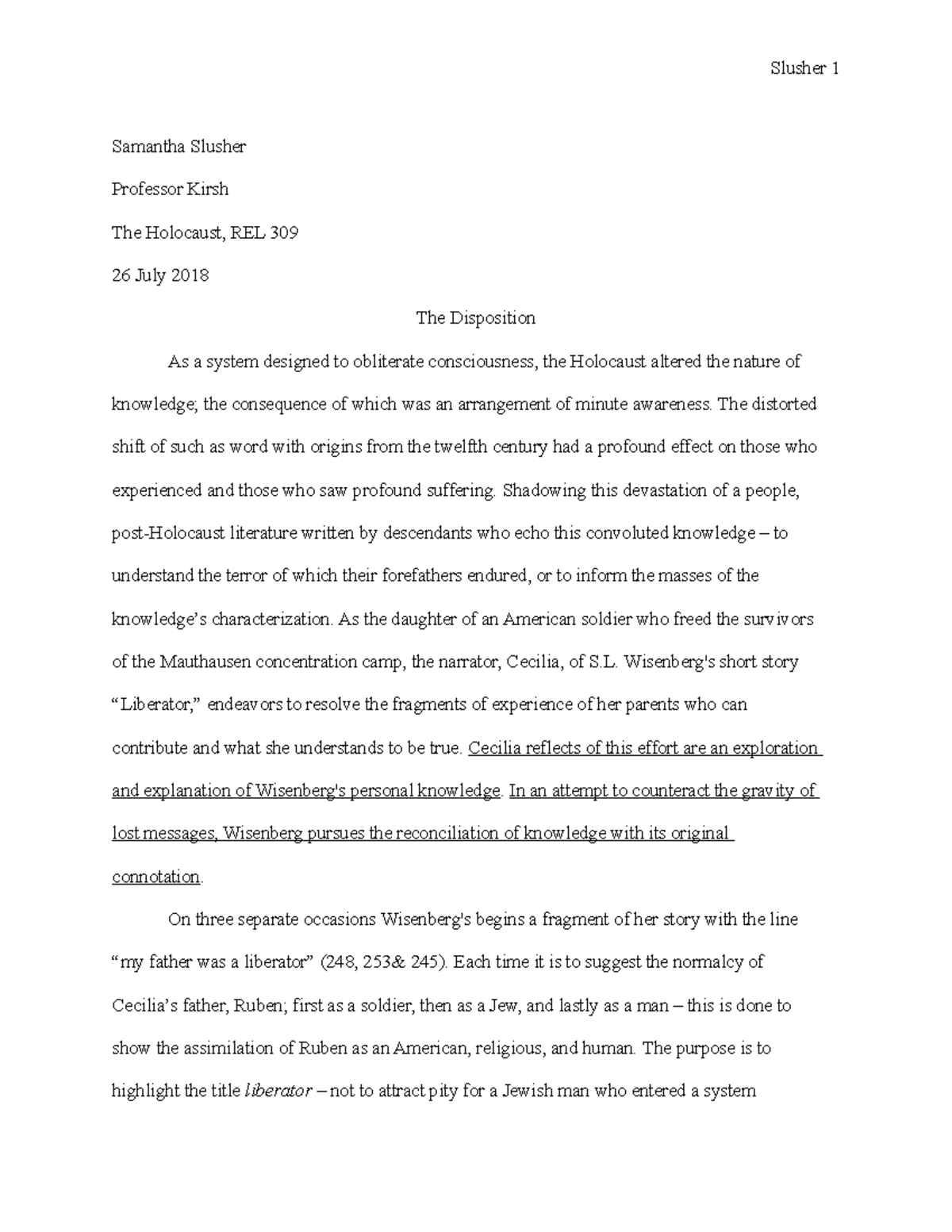 Paper 2 Grade A Slusher 1 Samantha Slusher Professor Kirsh The