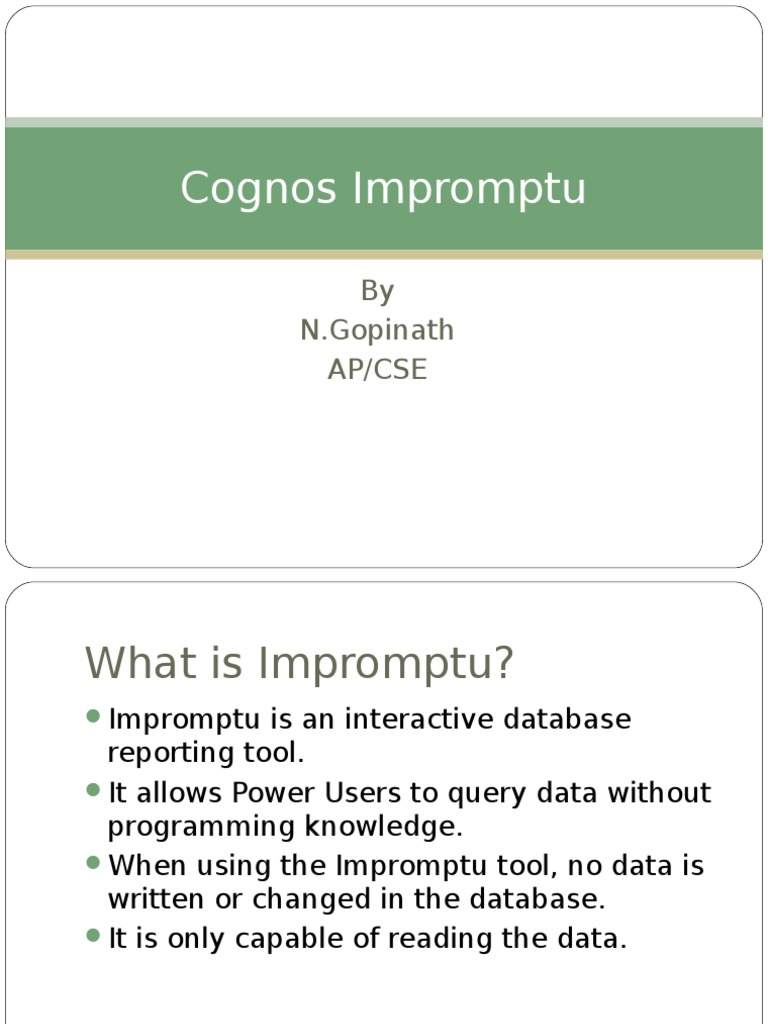 Cognos Impromptu What is Impromptu Impromptu is an