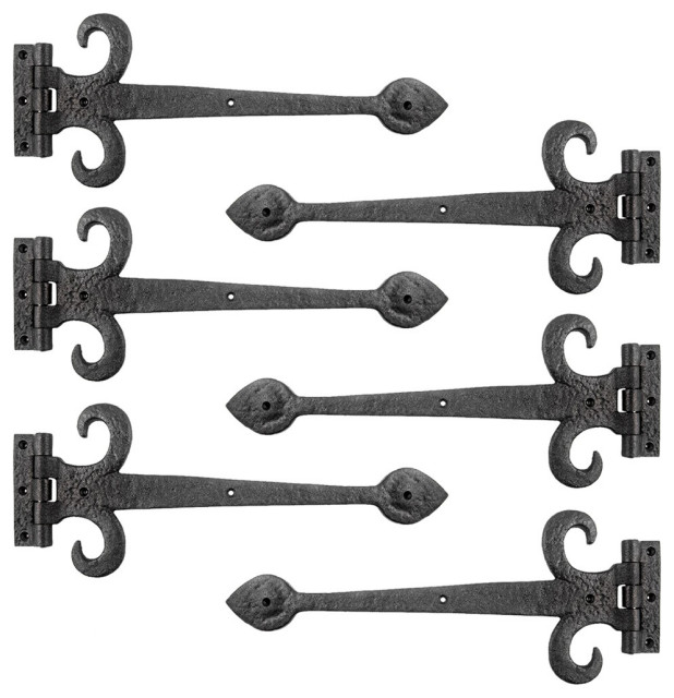 Wrought Iron Strap Hinge Fleur de Lis Heavy Duty 151/2" Set of 6