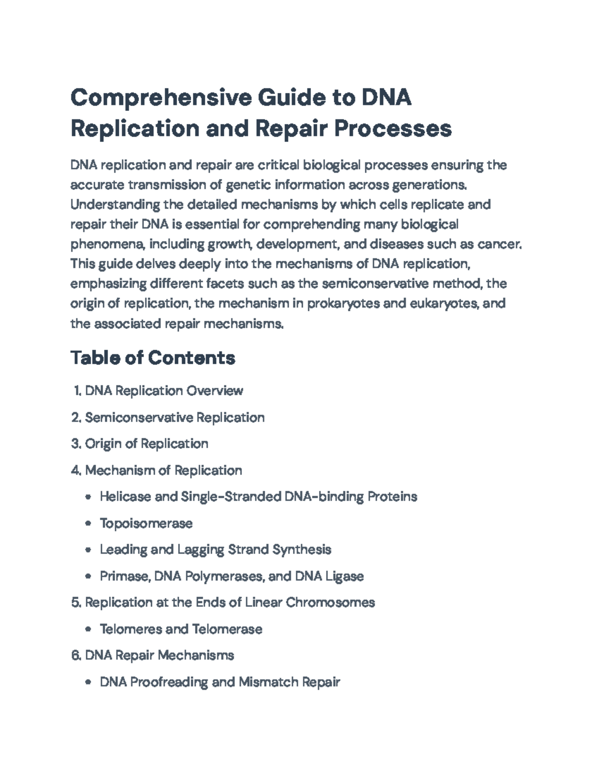 DNA Replication and Repair Mechanisms Comprehensive Guide
