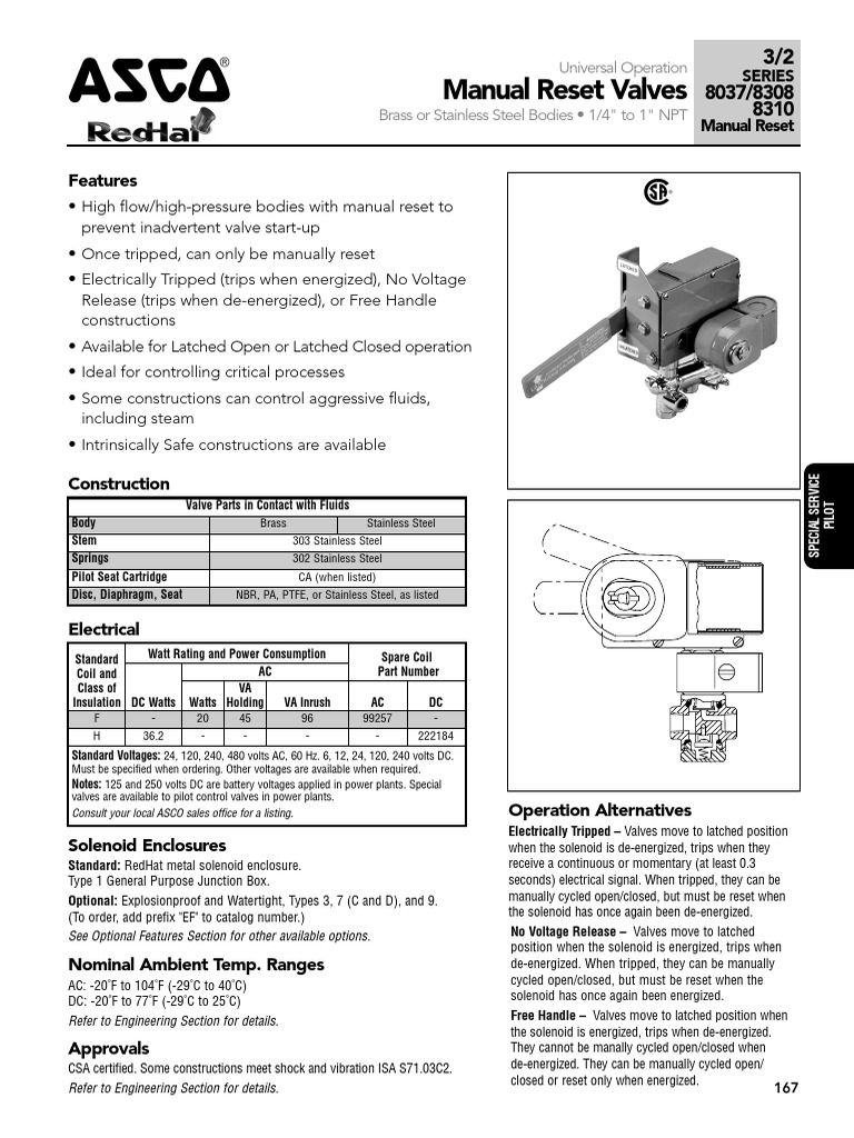Asco Series 037 Manual Reset Catalog PDF Valve Alternating Current