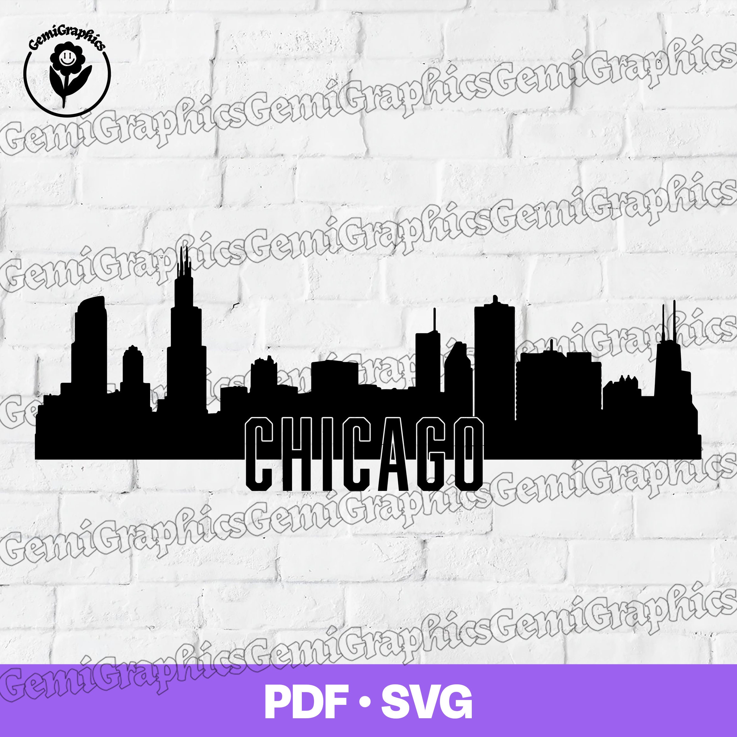 Chicago Skylines Cities Logo, Vector, Car, Emblem, SVG, Cut File, Print