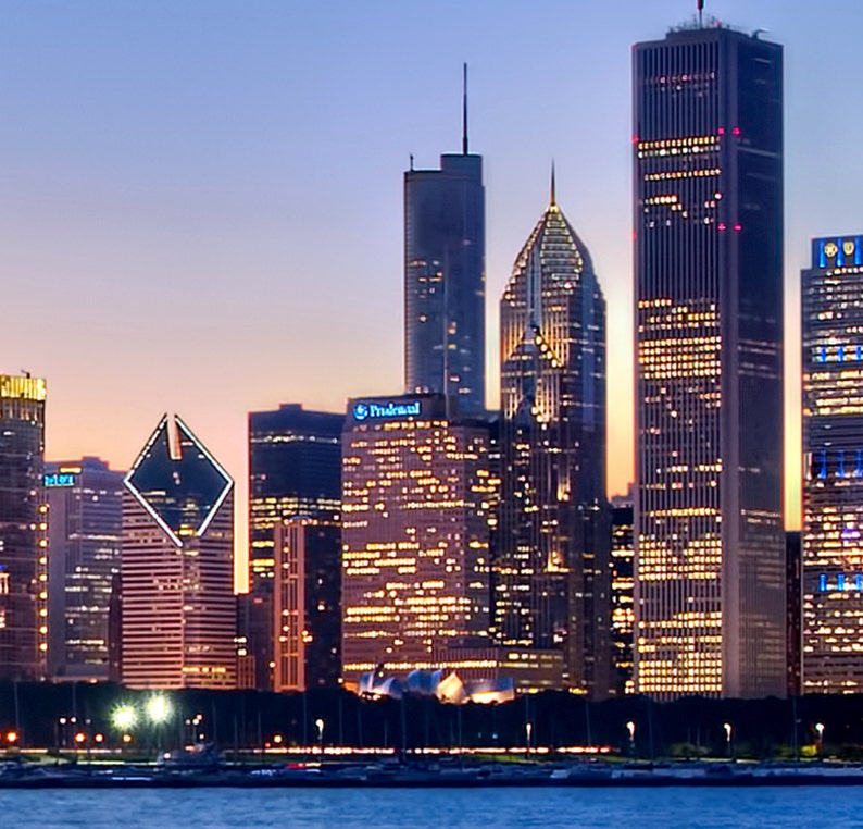 Chicago Downtown Skyline Lake Reflection Night Photography Etsy