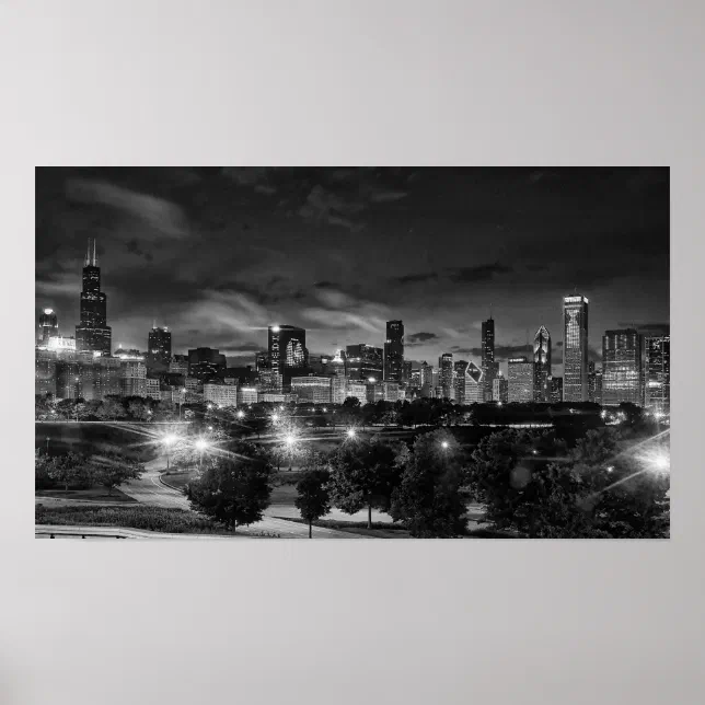 Chicago Skyline Poster Chicago Skyline Canvas, City at Night Print