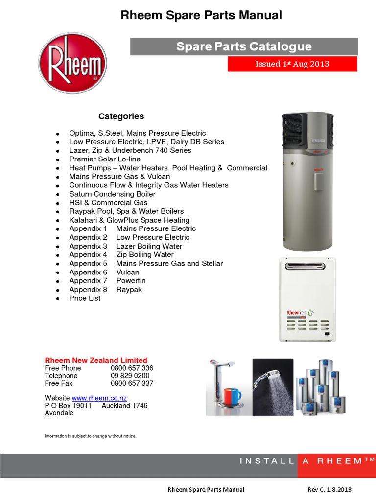 Rheem 2013 Spare Parts Manual PDF Valve Water Heating