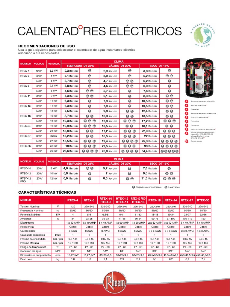 Rheem Residential Electric Water Heaters Performance Table Top