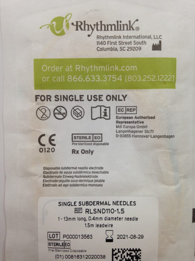 New RHYTHMLINK RLSND1071.5 Disposable Subdermal Needle (29/Box) (X