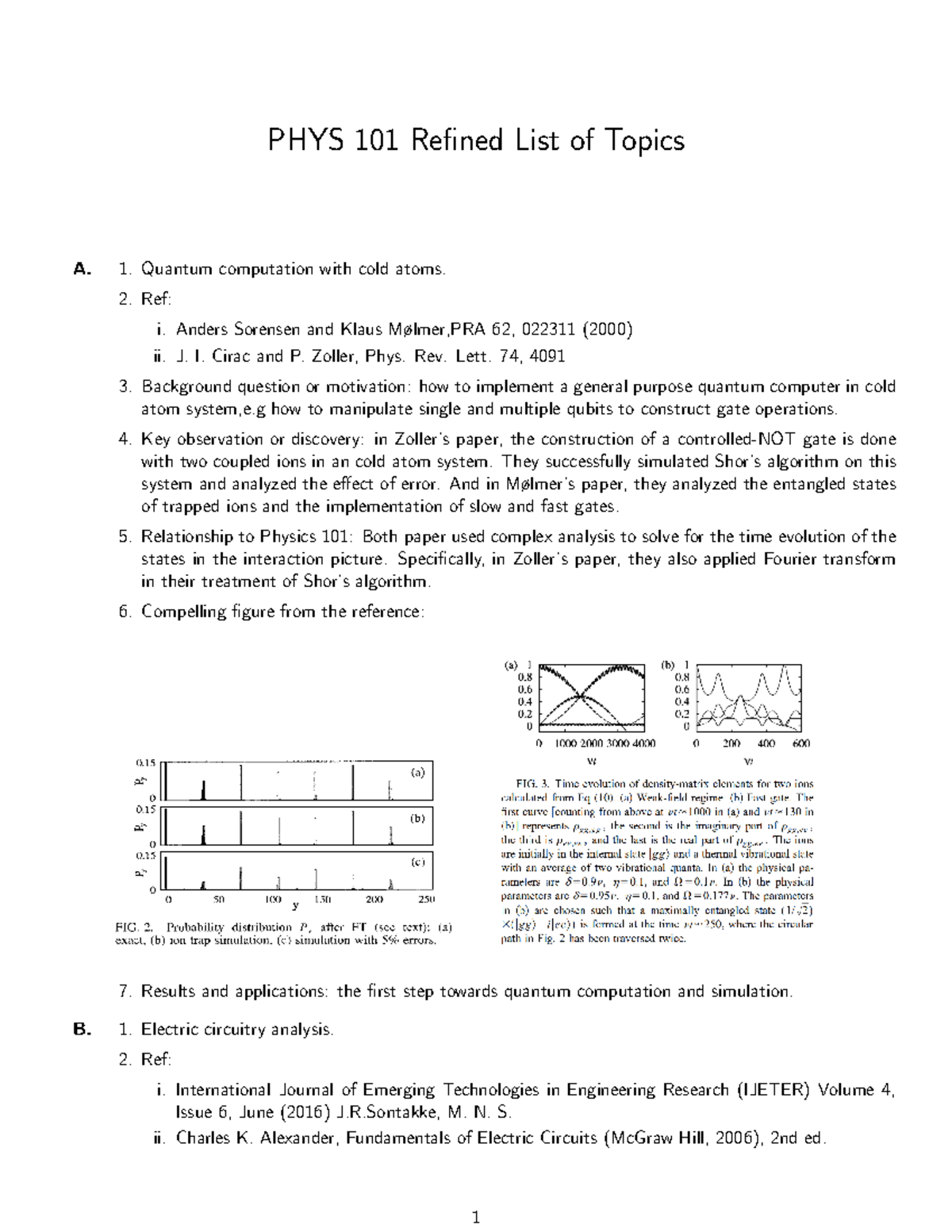 PHYS101 Refined List list PHYS 101 Refined List of Topics A. 1