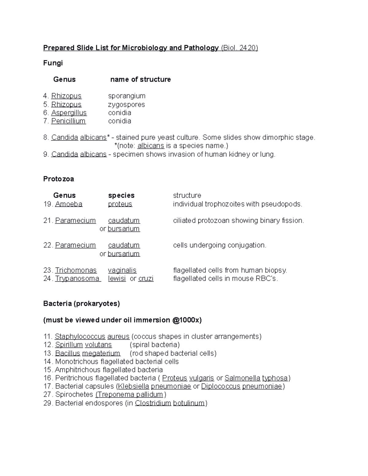 BIO 2420 Intro to Microbiology Sample Comprehensive Laboratory