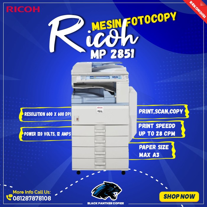 Jual Mesin Fotocopy Ricoh Aficio MP 2851 EXREKONDISI IMPOR B/W