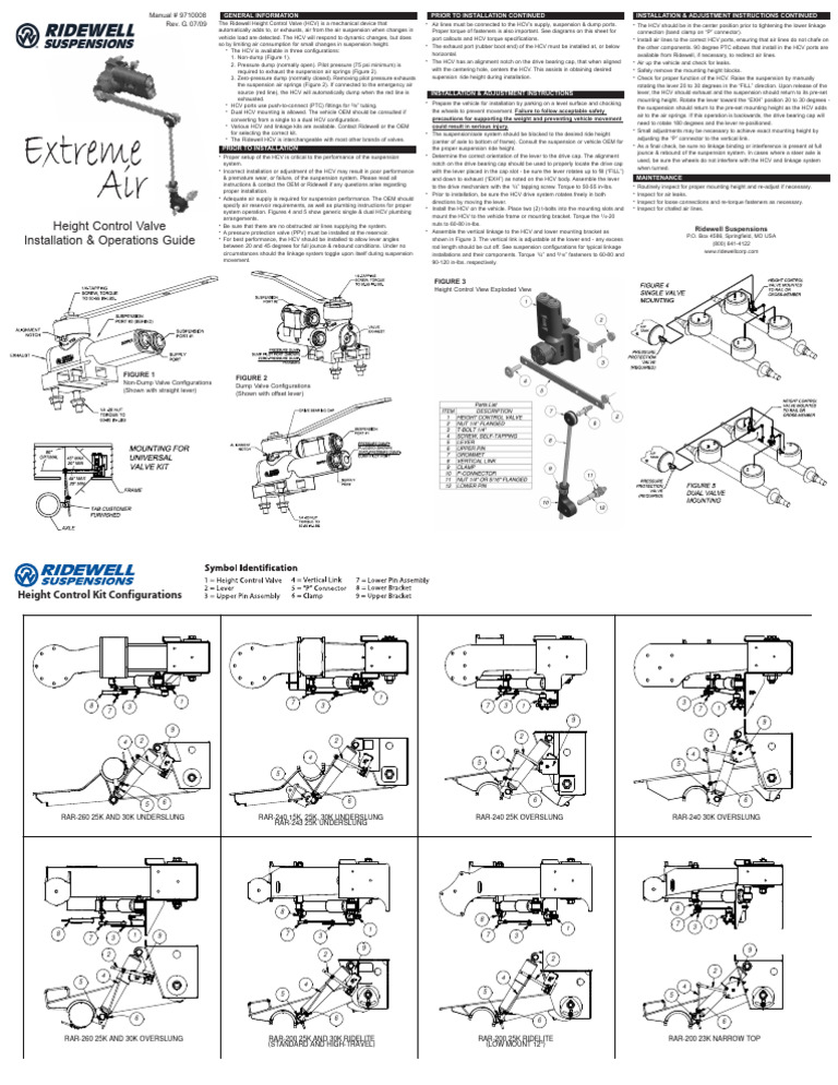 RIDEWELL SUSPENSIONS RAR260 INSTALLATION AND SERVICE MANUAL Pdf