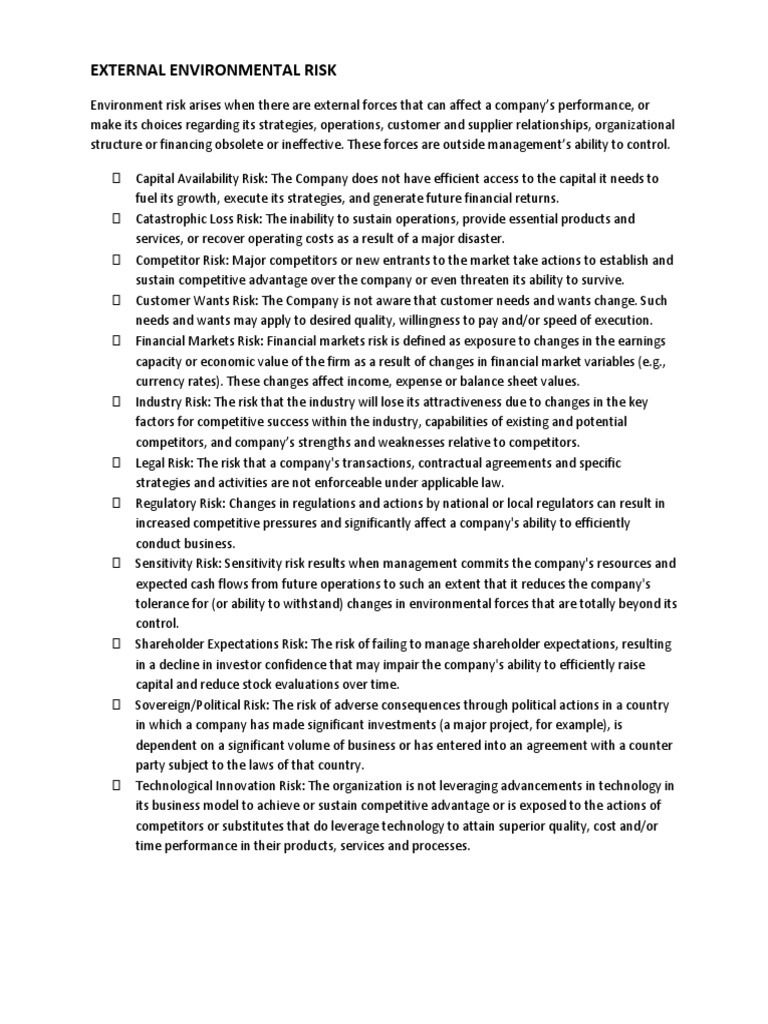 What are the 4 risk categories? Leia aqui What are the four major risk