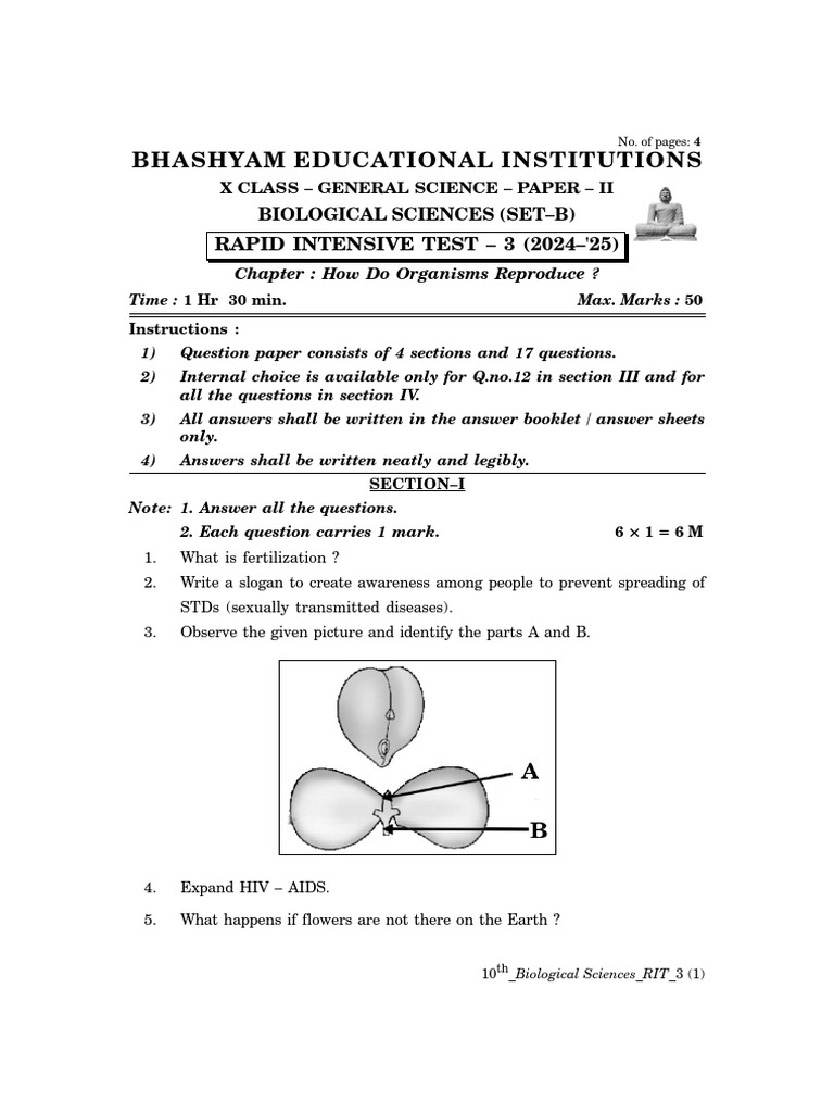 Biology RIT 3 (Set B) 06012025 PDF Testicle Reproduction