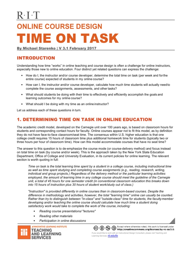 RIT Time On Task in Online Courses v3.1 PDF Educational