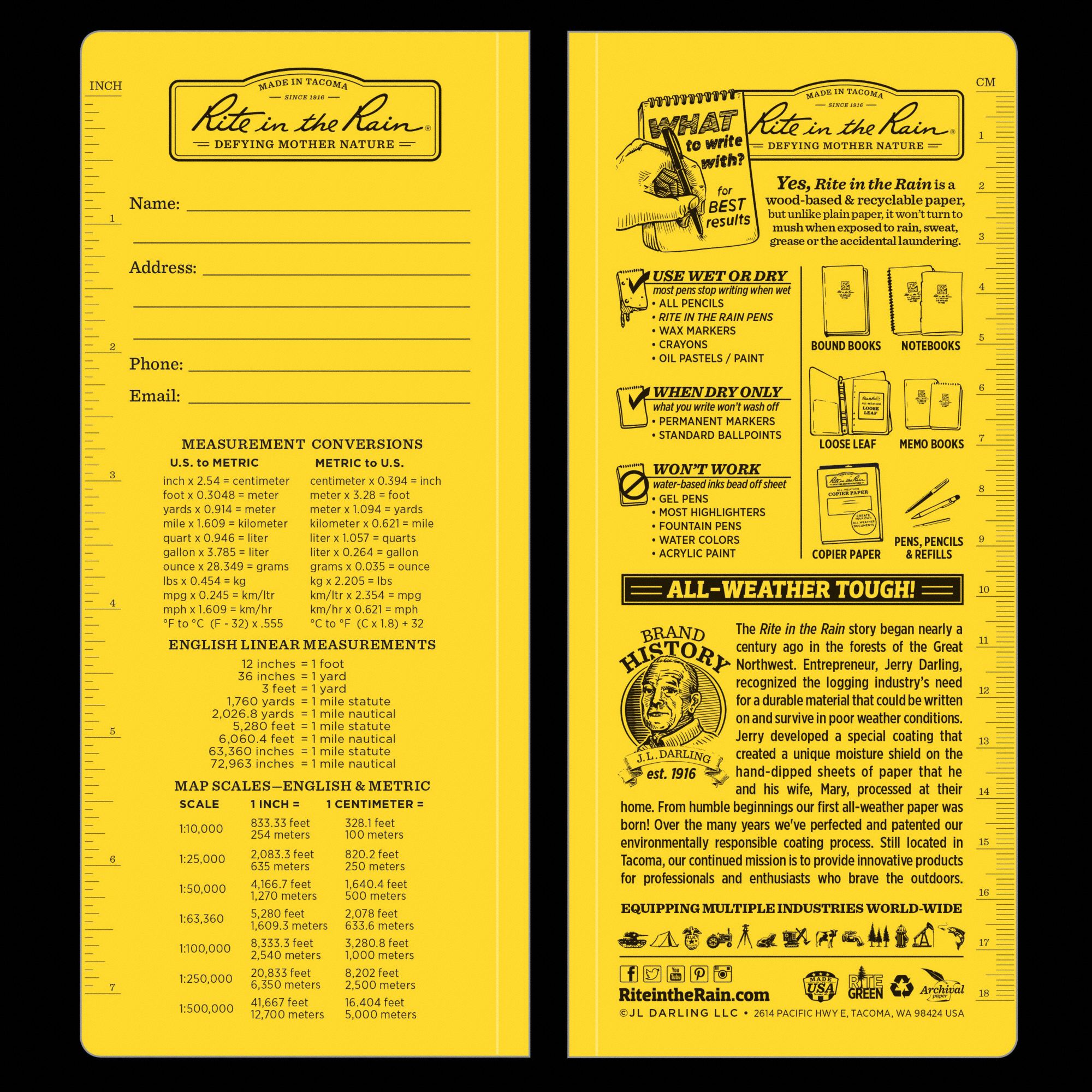 RITE IN THE RAIN All Weather Notebook 31/2 in x 5 in Sheet Size