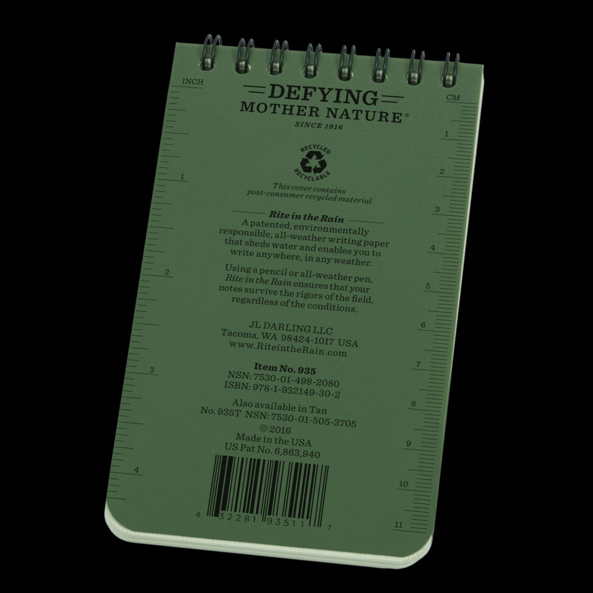 RITE IN THE RAIN All Weather Notebook 3 in x 5 in Sheet Size, Green