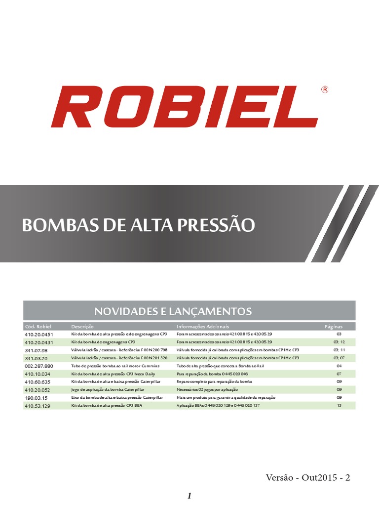 Catálogo Robiel Bombas Alta Pressão CP3 PDF Fabricação e Engenharia