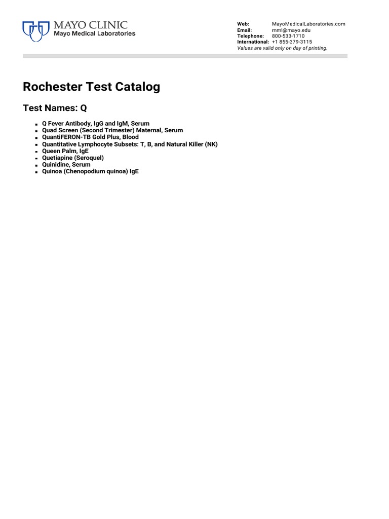 Rochester Test Catalog PDF