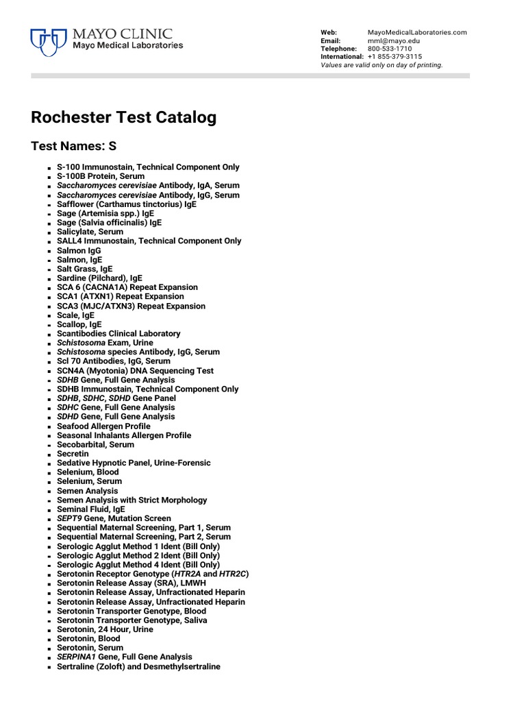Rochester Test Catalog PDF Molecular Biology Biochemistry