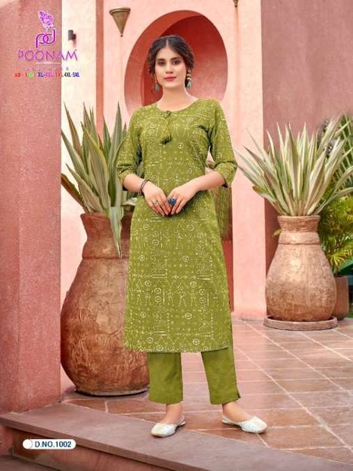 Poonam Rockstar Catalog Rayon Slub Kurti With Bottom Wholesale