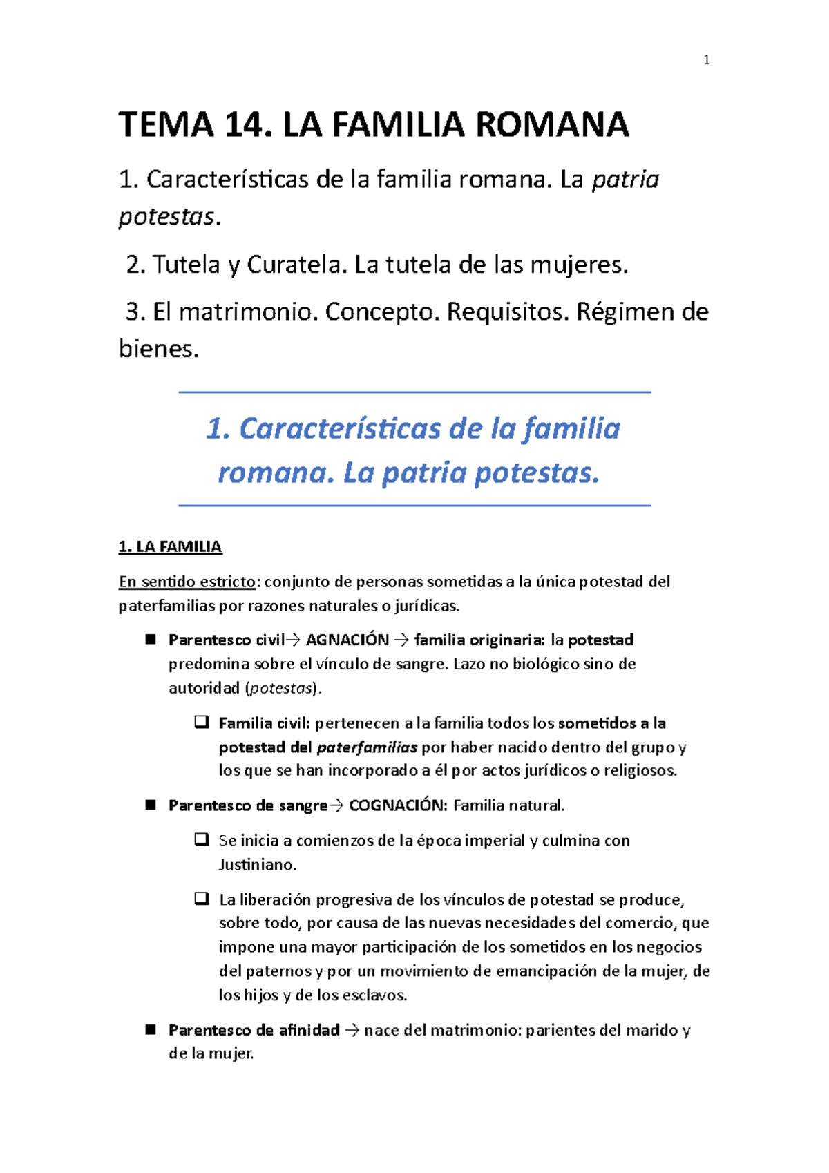 TEMA 14 TEMA 14. LA FAMILIA ROMANA 1. Características de la familia