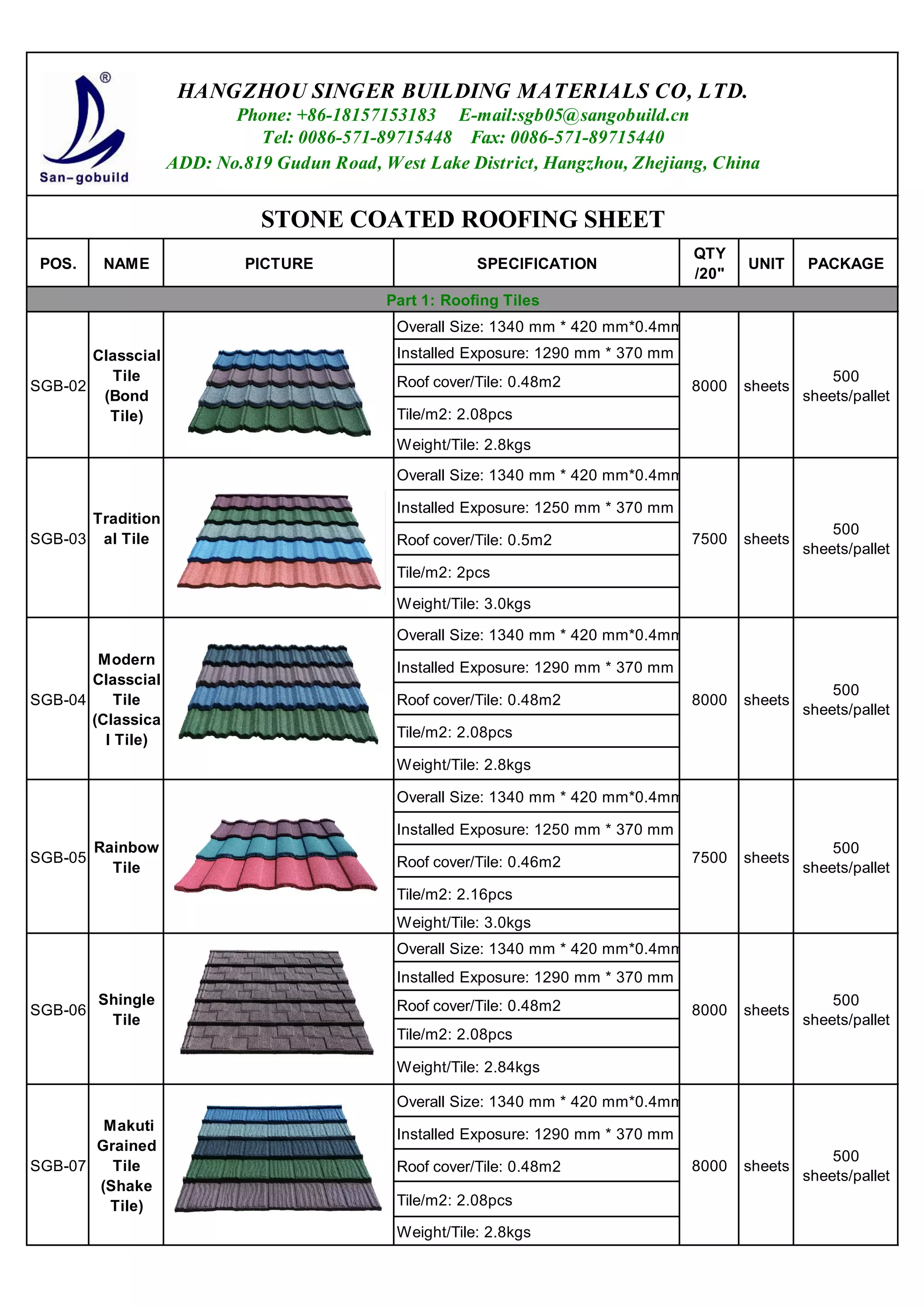 Catalogue of stone coated roofing sheets from SGBChina PDF