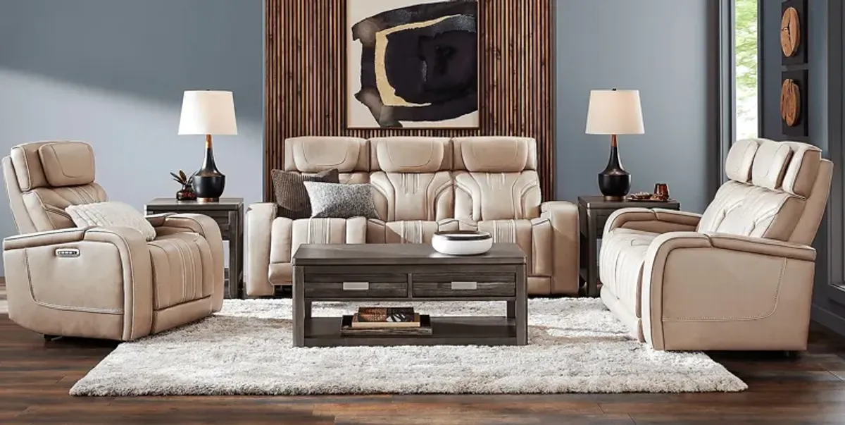 Horizon Ridge Beige Leather Triple Power Reclining Sofa with Massage