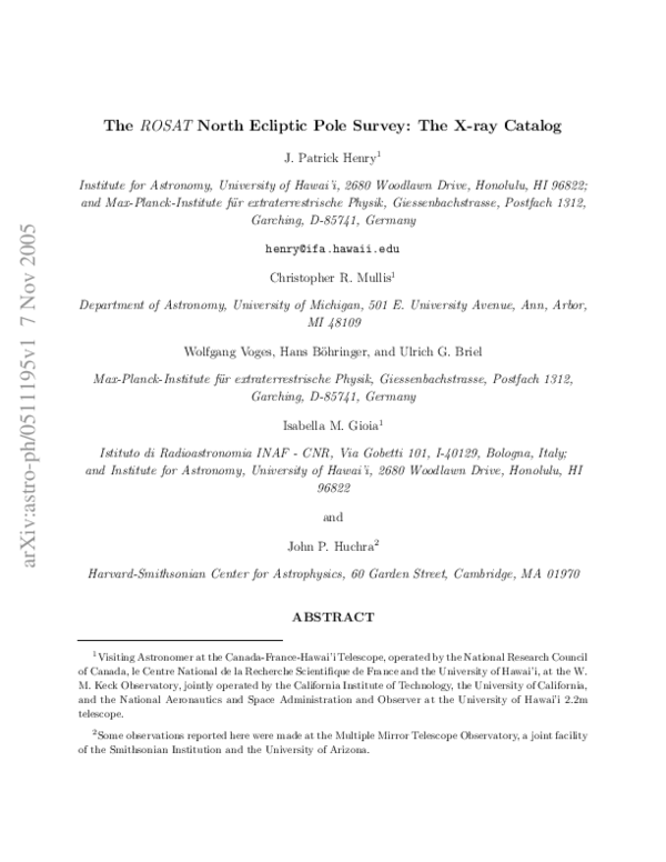 (PDF) The ROSAT North Ecliptic Pole Survey The X‐Ray Catalog
