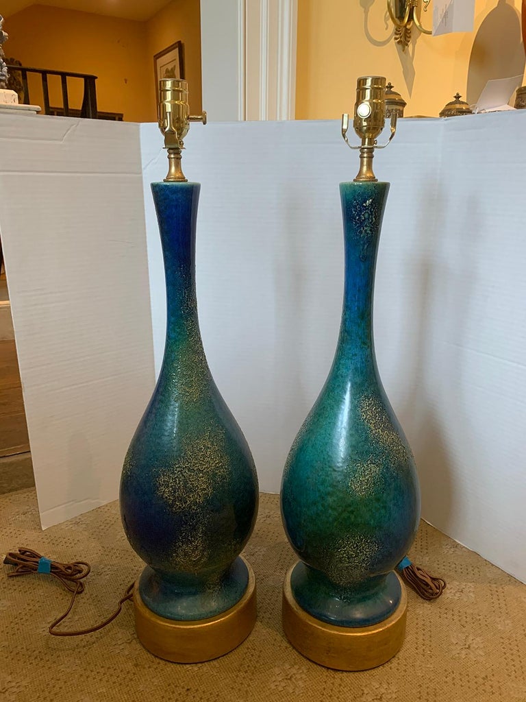 Royal Haeger Pair of BlueGreen Drip Glaze and Gilt Royal Haeger