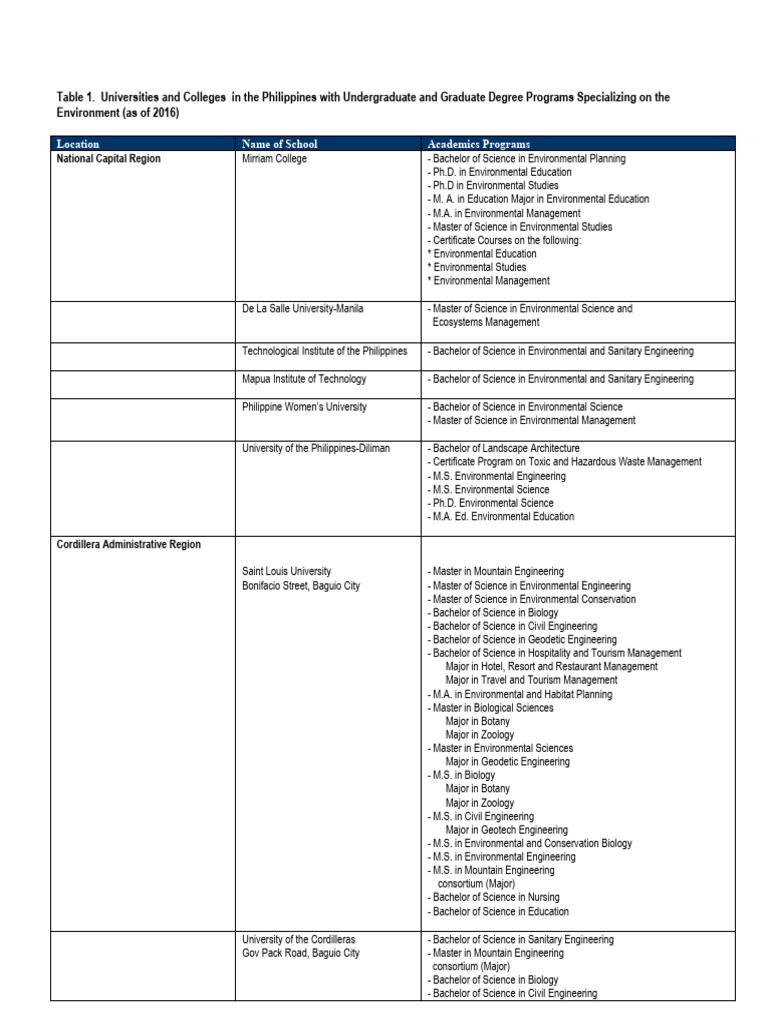 Annex 1Univ and Colleges in RP With Envt Courses PDF Bachelor's