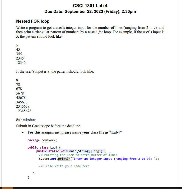 Solved CSCI 1301 Lab 4 Due Date September 22, 2023