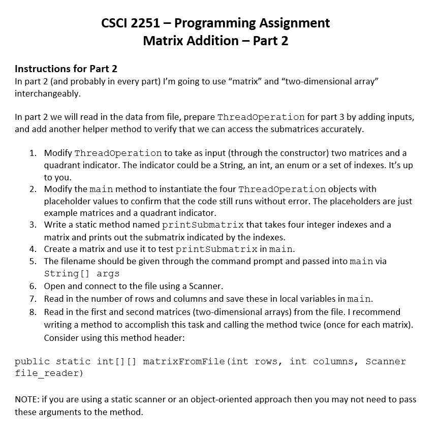 CSCI 2251 Programming Assignment Matrix Addition