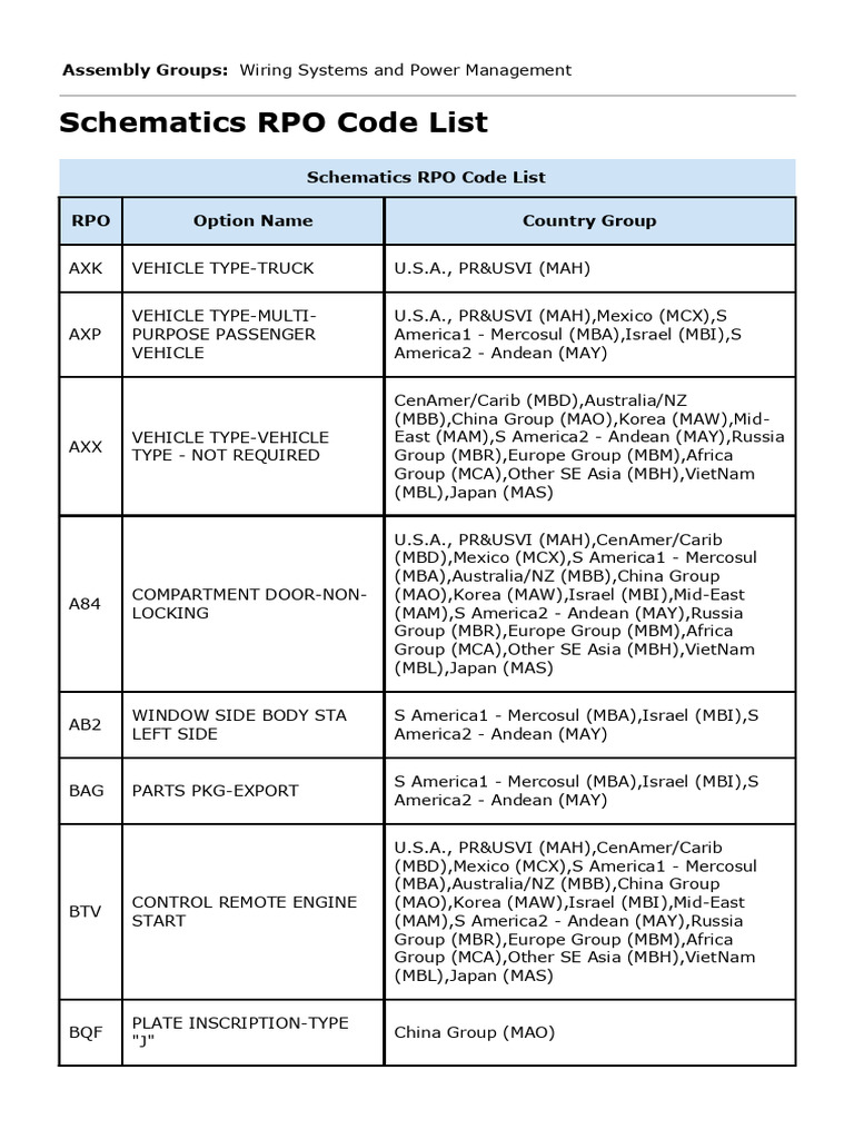 Schematics RPO Code List Download Free PDF Automotive Technologies