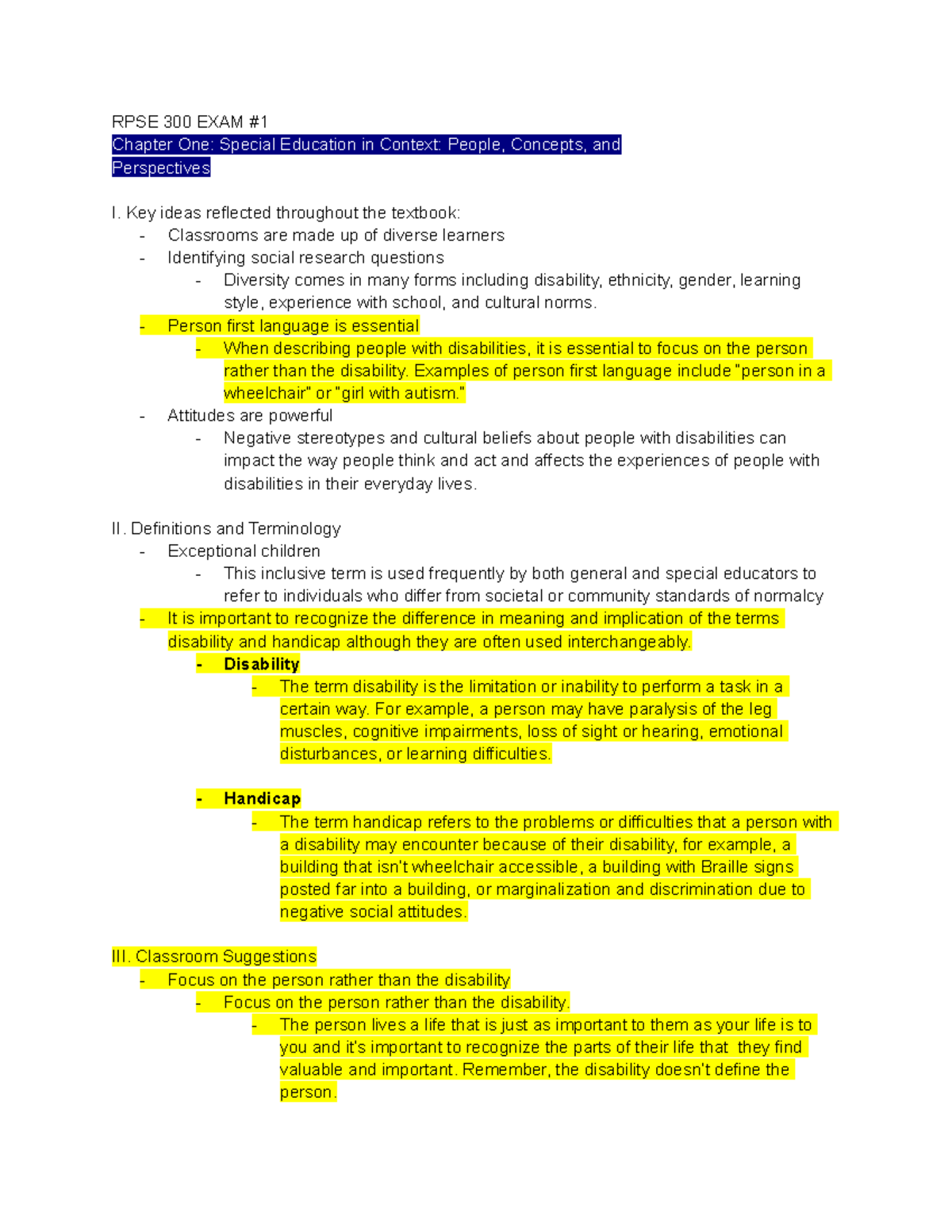 RPSE 300 EXAM 1 laban Jiychu RPSE 300 EXAM Chapter One Special